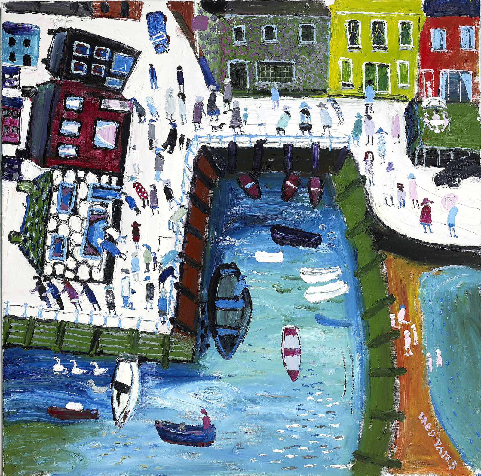 Fred Yates was born in Urmston, Lancashire in 1922. With a serviceman’s grant he enrolled at Bournemouth College where he received a formal education in drawing, printmaking and painting. He then taught in Devon and the South Coast for the next 20 years.